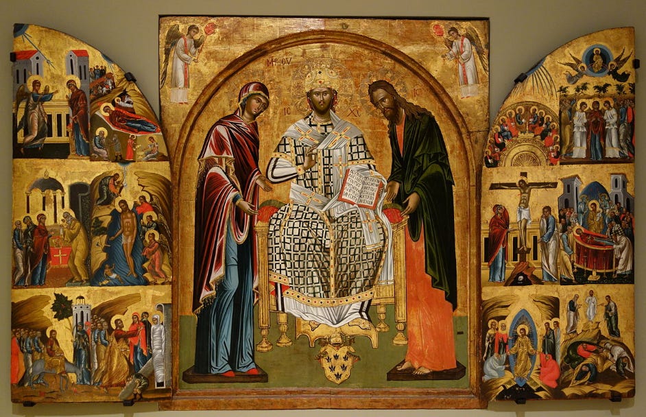 Christ, as God incarnate, sought to help mankind return to Paradise by fulfilling the promise God made to humanity in the Garden of Eve: that the serpent, which brought death into the world, would be crushed on its head. Christ’s resurrection was that which crushed the serpent's head. But this liberation from death required Christ to suffer and experience physical death. This means mankind, in order to follow Christ, will likewise suffer and experience physical death. While evil in this world continues so long as people choose to do evil, Christ, as the Judge, will uphold enmity between the seeds (Gen. 3:15). The sheep, which are of God, will ascend to the Kingdom and eternal life. The goats are “the seed of the serpent” because “they reject Christ and follow the Devil (OSB, p. 8),” and will “go away into everlasting punishment (Matthew 23:46).” Evil is therefore a condition or aspect that exists in the world outside of Paradise, which is the fallen state earth has been in since Adam and Eve were expelled from the Garden. This has separated mankind from the presence of God, making Christ the closest mankind has been to God, in a physical sense, since the fall. His Church becomes a place where we can interact with God, by and through Christ.